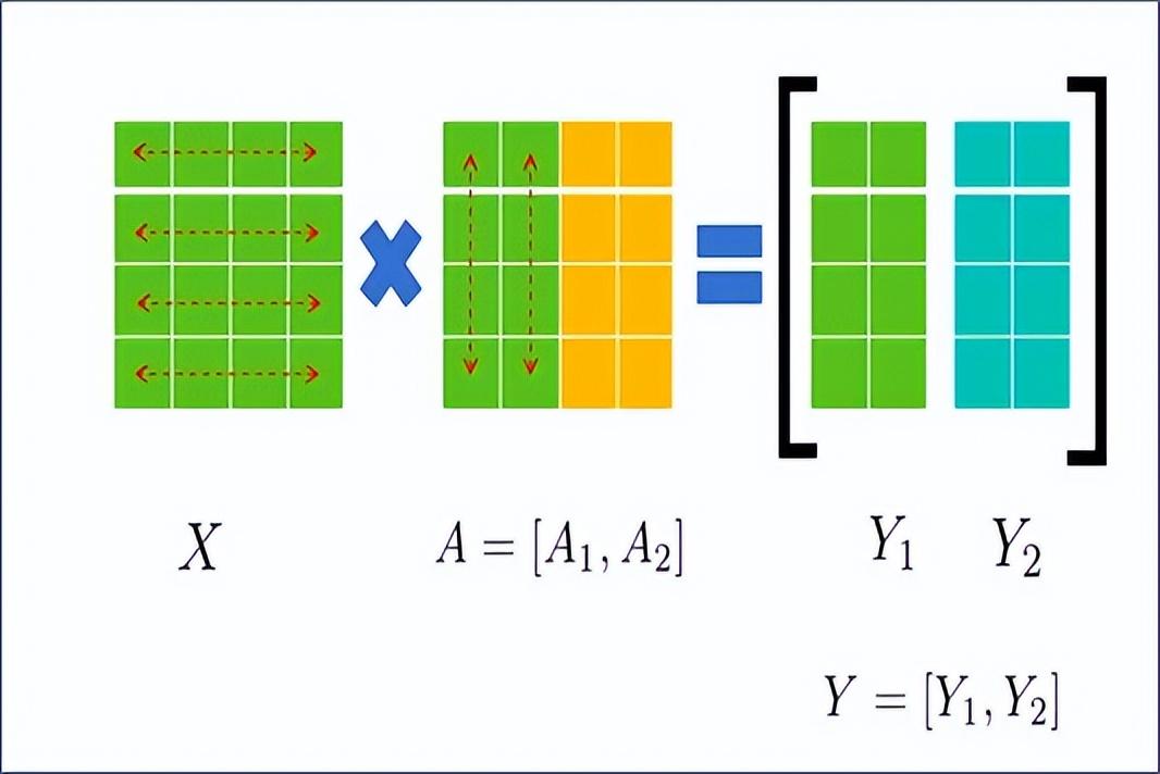 這樣就將矩陣分成了塊,放在兩張卡上計算,計算完成后再通過All-Reduce獲取其他卡上的計算結果,得到最終的Y。